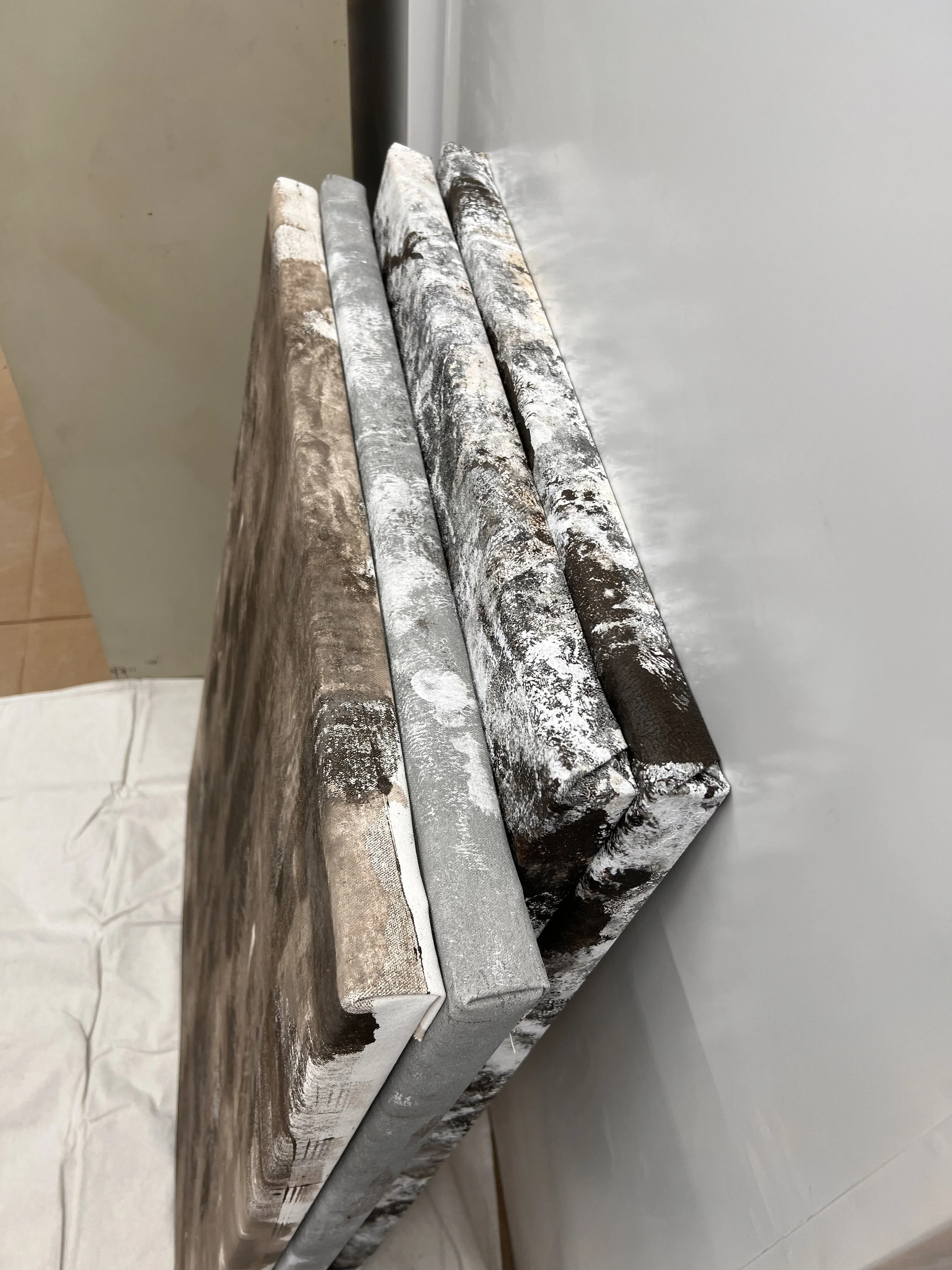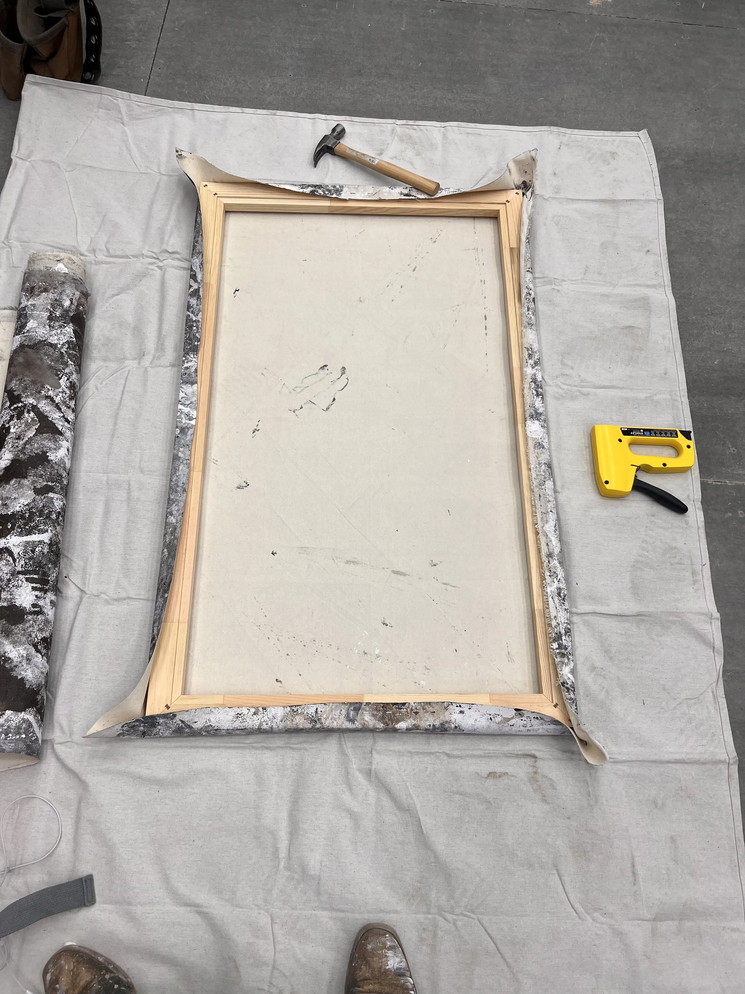 My first stretched piece—a diptych…AND I just noticed the top piece is upside down.